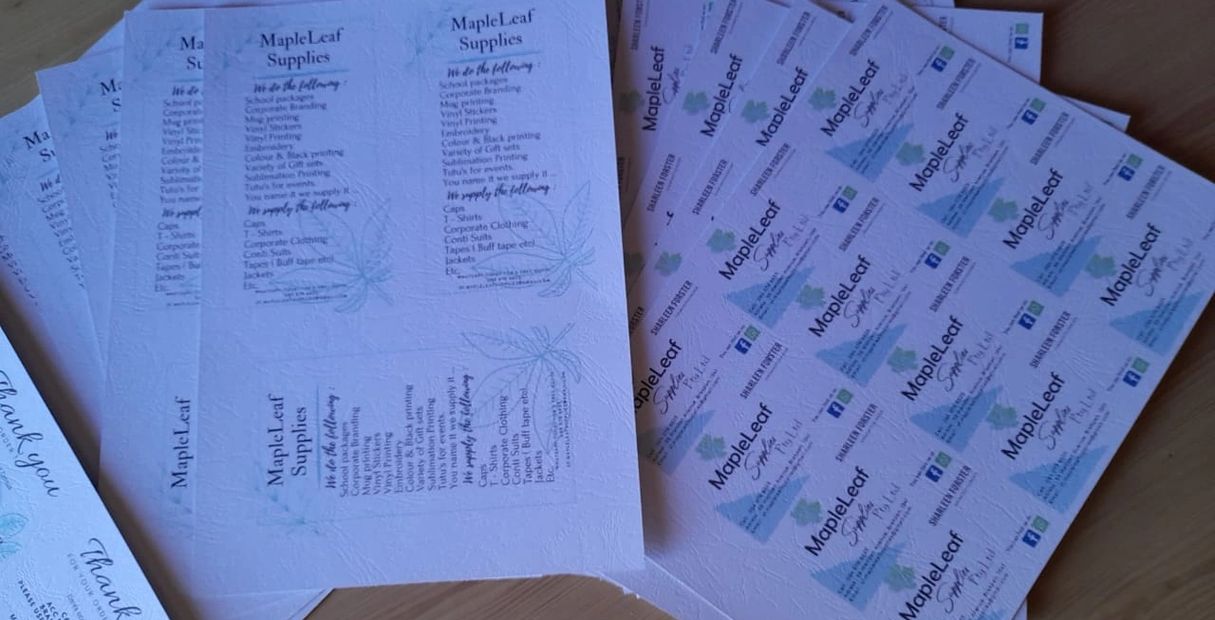 Our company offers services such as Mug printing , Corporate Branding , Printing of vinyl stickers , normal paper printing , Sublimation printing and everything in between. Our company also supply industries with Stationery supplies , Personal gifts , Corporate gifts and Clothing (Personal Protective Equipment).